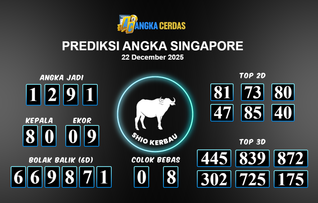 Prediksi Togel SINGAPORE untuk hari ini Senin 22 Desember November 2025, adalah salah