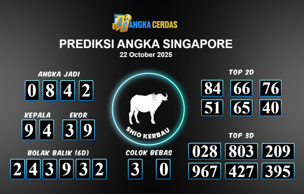 Prediksi Togel SINGAPORE untuk hari ini Rabu 22 Oktober 2025, adalah salah