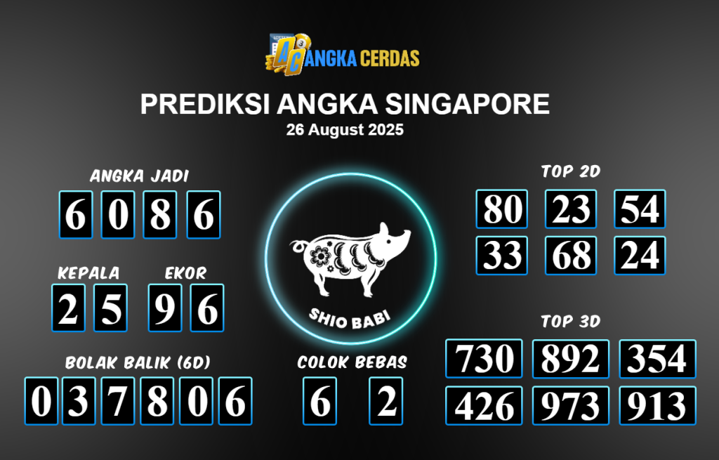 Prediksi Togel SINGAPORE untuk hari ini Selasa 26 Agustus 2025, adalah salah
