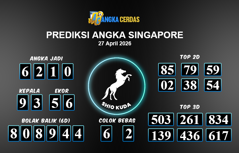 Prediksi Togel SINGAPORE untuk hari ini Senin, 27 April 2026, adalah salahsatu jenis togel yang memiliki banyak penggemar.Ini terutama ditujukanbagi Anda yang menyukai 4d/3d/2d. Prediksi Angka Cerdas yang kamisediakan,bisa
