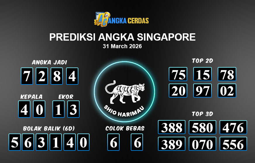 Prediksi Togel SINGAPORE untuk hari ini Selasa, 31 Maret 2026, adalah salah
