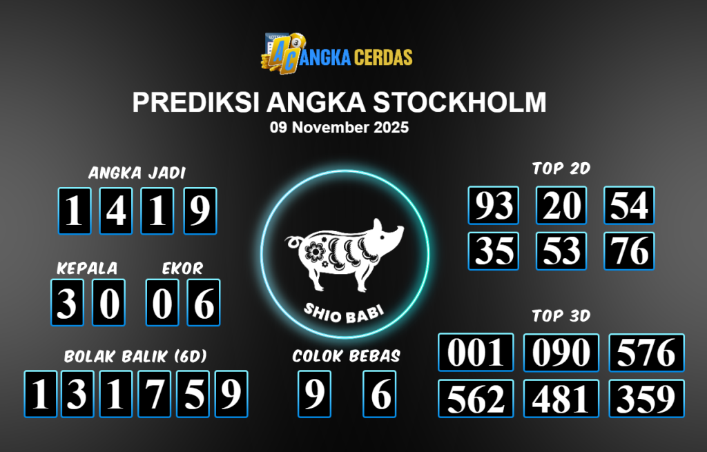Prediksi Togel STOCKHOLM untuk hari ini Minggu 09 November 2025, adalah salah
