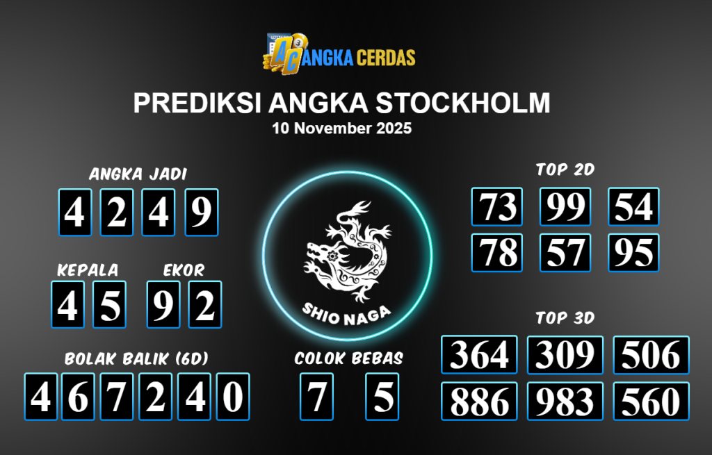 Prediksi Togel STOCKHOLM untuk hari ini Senin 10 November 2025, adalah salah