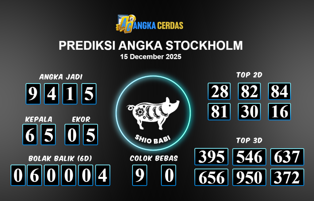 Prediksi Togel STOCKHOLM untuk hari ini Senin 15 Desember November 2025, adalah salah