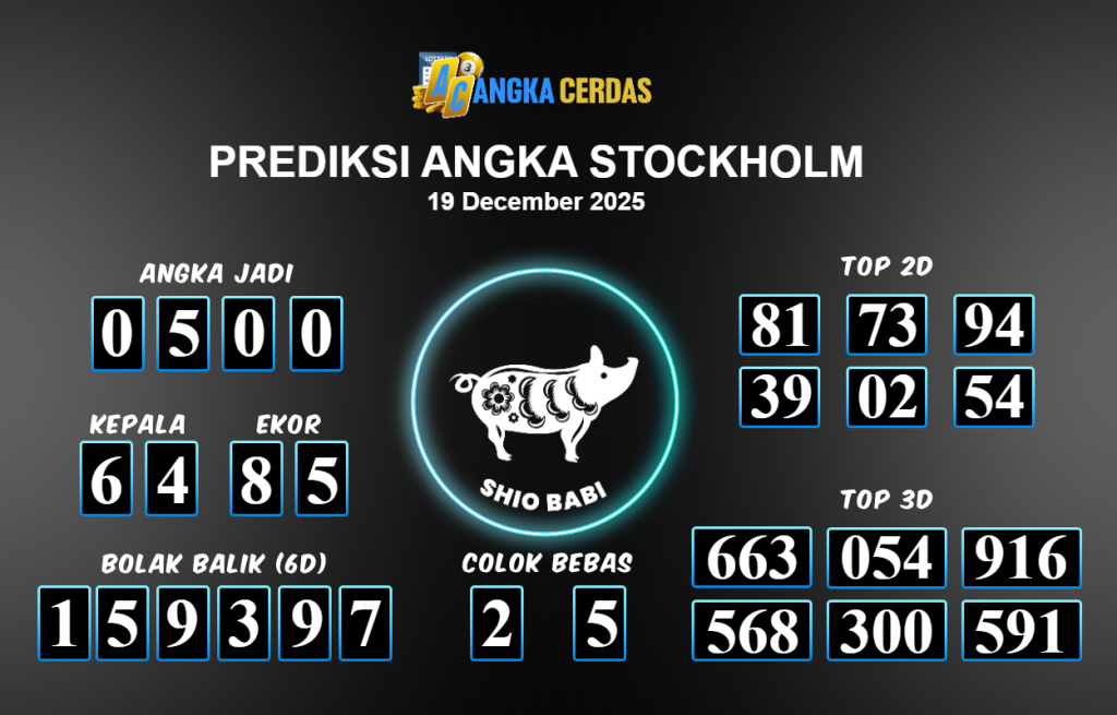 Prediksi Togel STOCKHOLM untuk hari ini Jumat 19 Desember November 2025, adalah salah