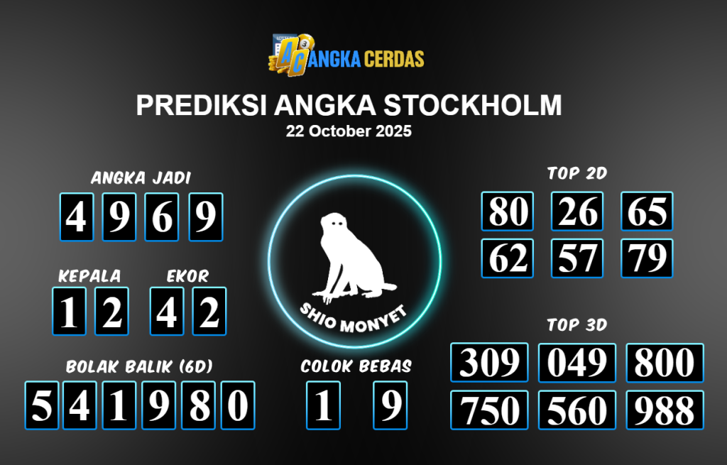 Prediksi Togel STOCKHOLM untuk hari ini Rabu 22 Oktober 2025, adalah salah