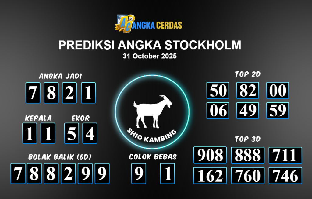 Prediksi Togel STOCKHOLM untuk hari ini Sabtu 25 Oktober 2025, adalah salah