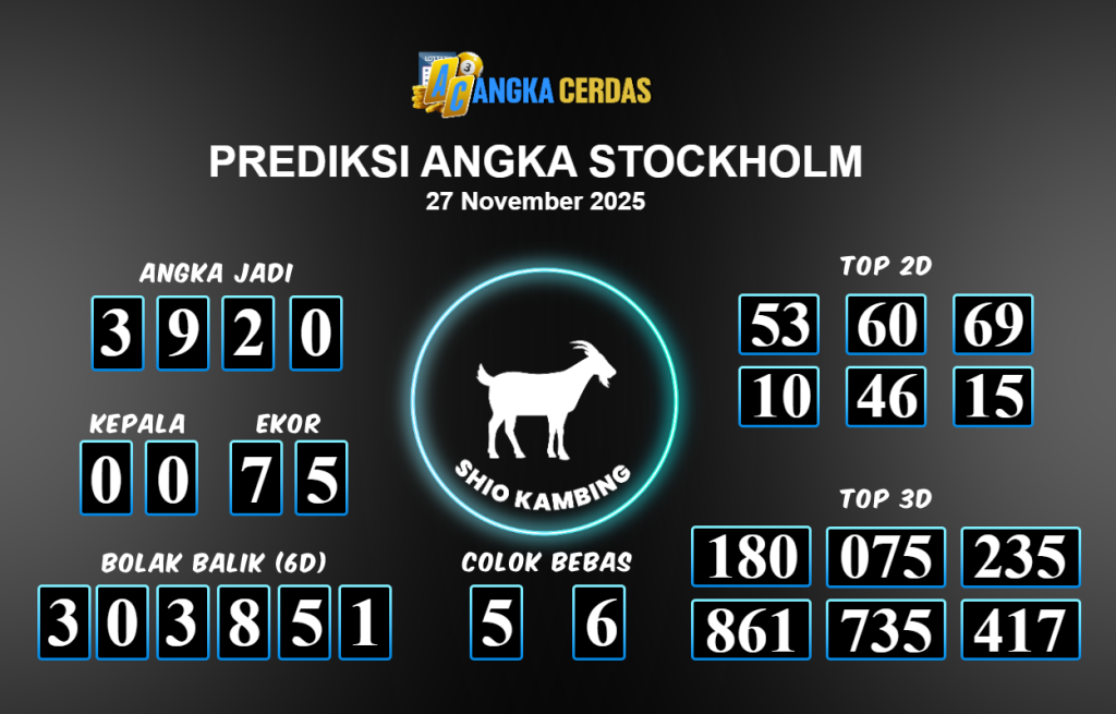 Prediksi Togel STOCKHOLM untuk hari ini Kamis 27 November 2025, adalah salah