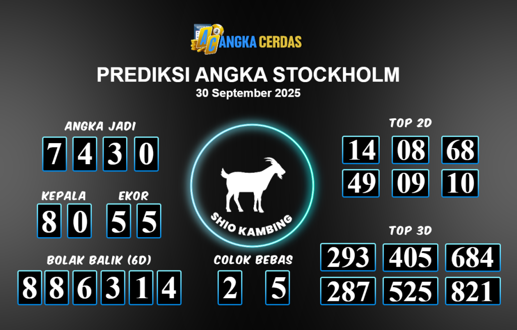 Prediksi Togel STOCKHOLM untuk hari ini Selasa 30 September 2025, adalah salah