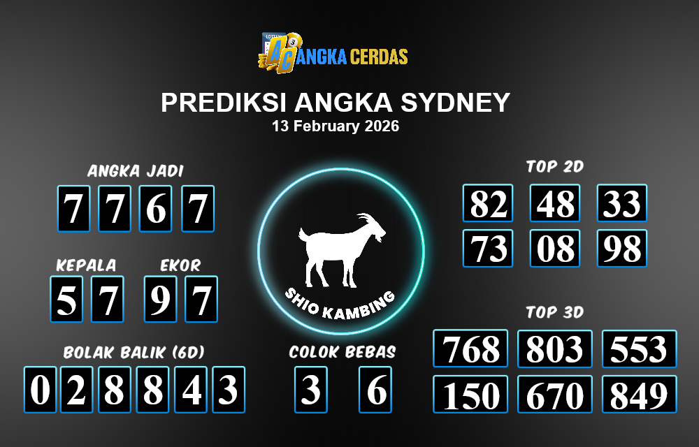 Prediksi Togel SYDNEY untuk hari ini Jumat, 13 Februari 2026, adalah salah