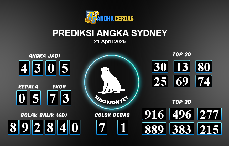 Prediksi Togel SYDNEY untuk hari ini Selasa, 21 April 2026, adalah salahsatu jenis togel yang memiliki banyak penggemar.Ini terutama ditujukanbagi Anda yang menyukai 4d/3d/2d. Prediksi Angka Cerdas yang kamisediakan,bisa
