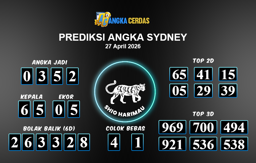 Prediksi Togel SYDNEY untuk hari ini Senin, 27 April 2026, adalah salahsatu jenis togel yang memiliki banyak penggemar.Ini terutama ditujukanbagi Anda yang menyukai 4d/3d/2d. Prediksi Angka Cerdas yang kamisediakan,bisa