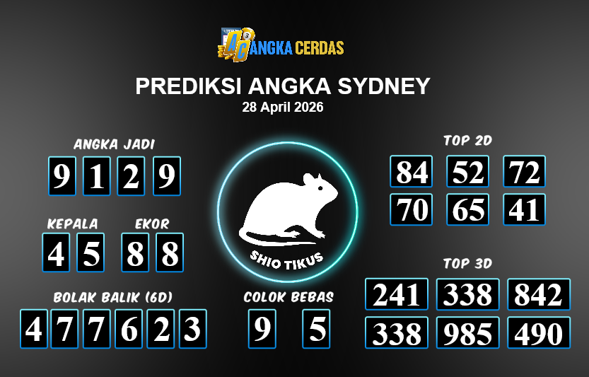 Prediksi Togel SYDNEY untuk hari ini Selasa, 28 April 2026, adalah salahsatu jenis togel yang memiliki banyak penggemar.Ini terutama ditujukanbagi Anda yang menyukai 4d/3d/2d. Prediksi Angka Cerdas yang kamisediakan,bisa