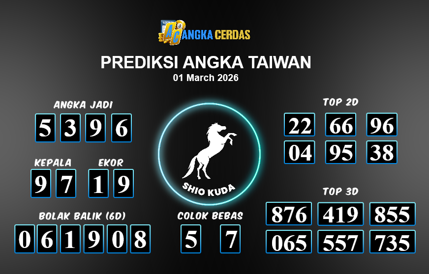 Prediksi Togel TAIWAN untuk hari ini Minggu, 01 Maret 2026, adalah salah
