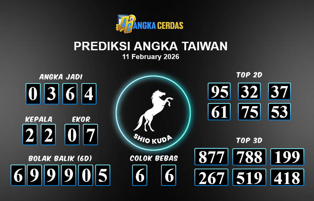 Prediksi Togel TAIWAN untuk hari ini Rabu, 11 Februari 2026, adalah salah