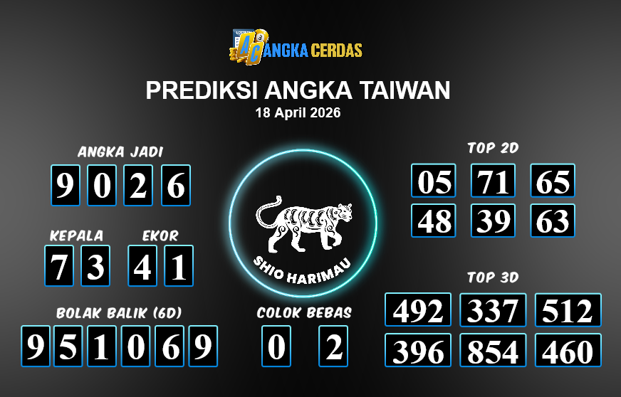 Prediksi Togel TAIWAN untuk hari ini Sabtu, 18 April 2026, adalah salahsatu jenis togel yang memiliki banyak penggemar.Ini terutama ditujukanbagi Anda yang menyukai 4d/3d/2d. Prediksi Angka Cerdas yang kamisediakan,bisa