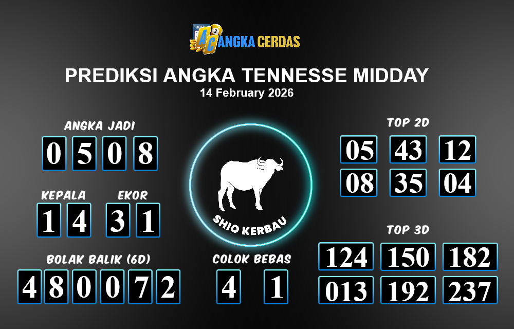 Angka Cerdas : Bocoran Prediksi Togel TENNESSE MIDDAY Tanggal 14 FEBRUARI 2026