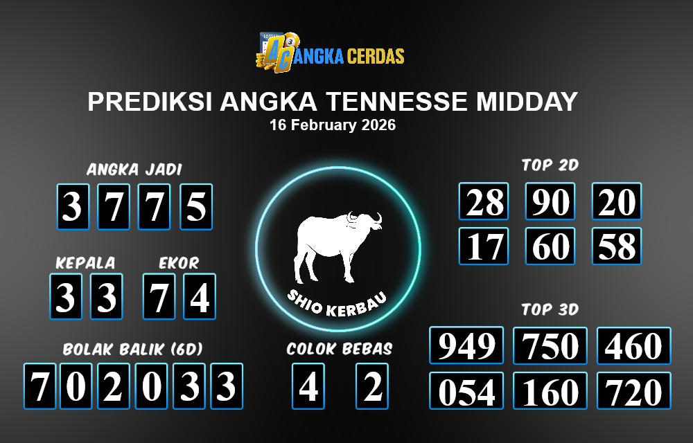 Prediksi Togel TENNESSE MIDDAY untuk hari ini Senin, 16 Februari 2026, adalah salah