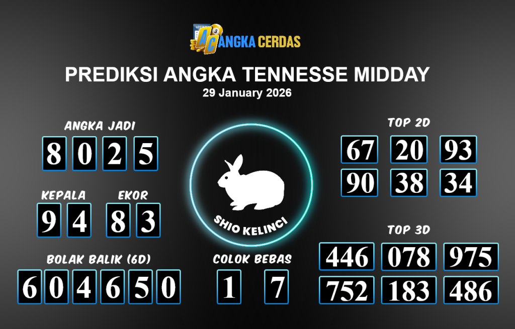 Prediksi Togel TENNESSE MIDDAY untuk hari ini Kamis 29 Januari 2026,adalah salah