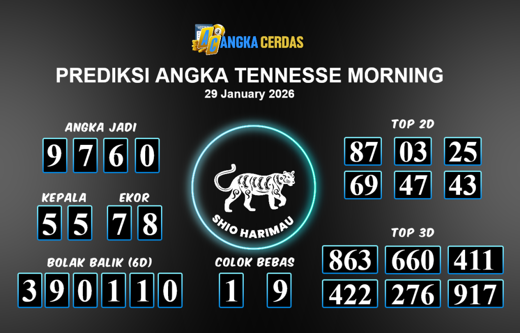 Prediksi Togel TENNESSE MORNING untuk hari ini Kamis 29 Januari 2026,adalah salah