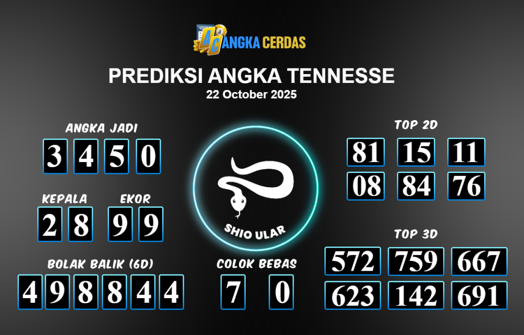Prediksi Togel TENNESSE untuk hari ini Rabu 22 Oktober 2025, adalah salah