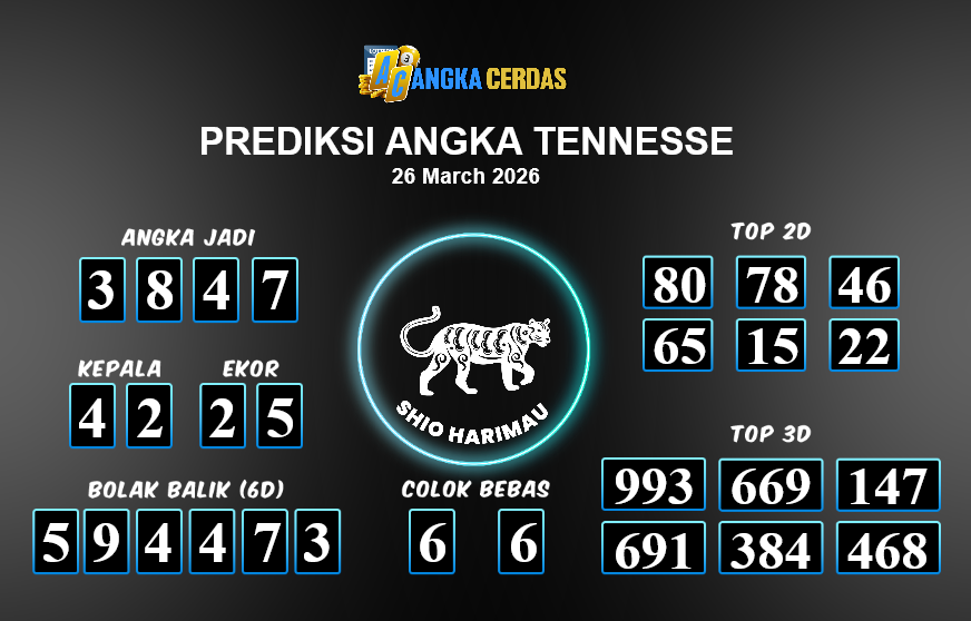 Prediksi Togel TENNESSE untuk hari ini Kamis, 26 Maret 2026, adalah salah