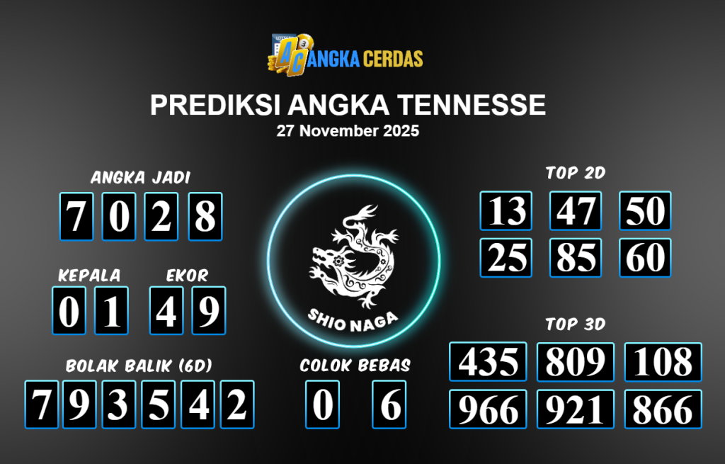 Prediksi Togel TENNESSE untuk hari ini Kamis 27 November 2025, adalah salah