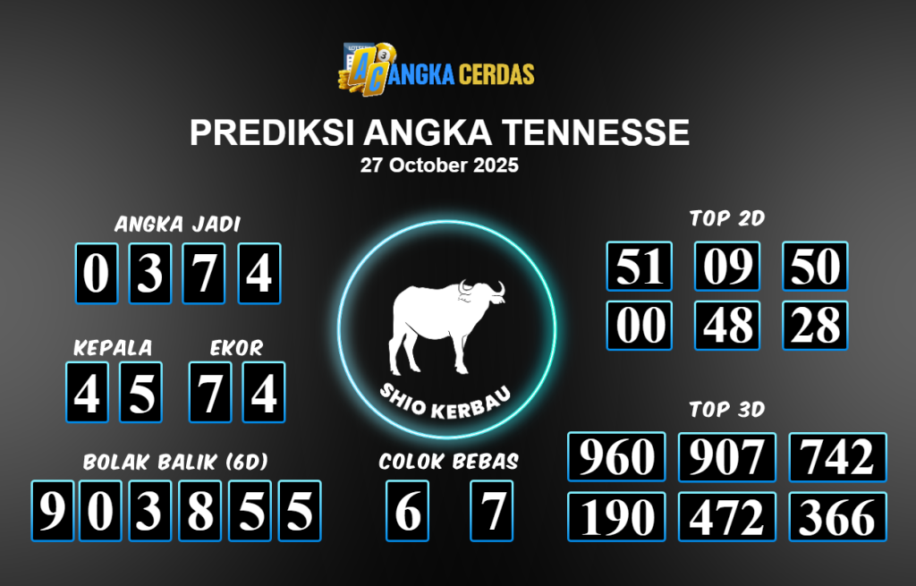 Angka Cerdas : Bocoran Prediksi Togel TENNESSE Tanggal 27 Oktober 2025