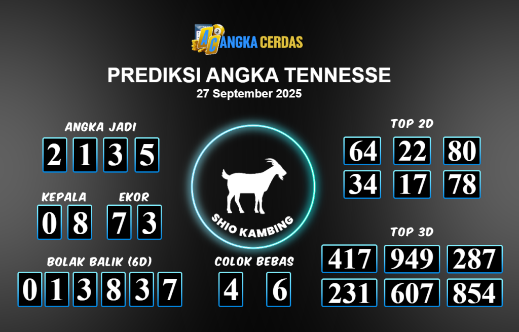 Prediksi Togel TENNESSE untuk hari ini Sabtu 27 September 2025, adalah salah