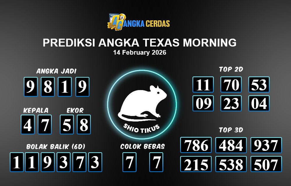 Angka Cerdas : Bocoran Prediksi Togel TEXAS MORNING Tanggal 14 FEBRUARI 2026
