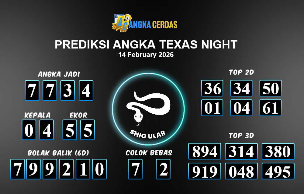 Prediksi Togel TEXAS NIGHT untuk hari ini Sabtu, 14 Februari 2026, adalah salah