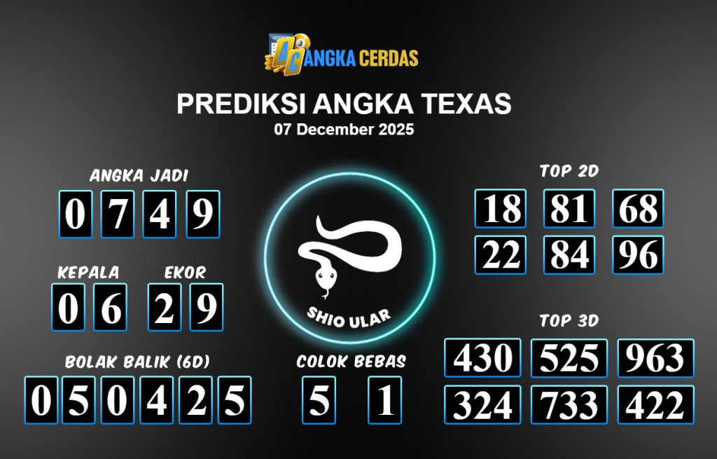 Prediksi Togel TEXAS untuk hari ini Minggu 07 Desember November 2025, adalah salah