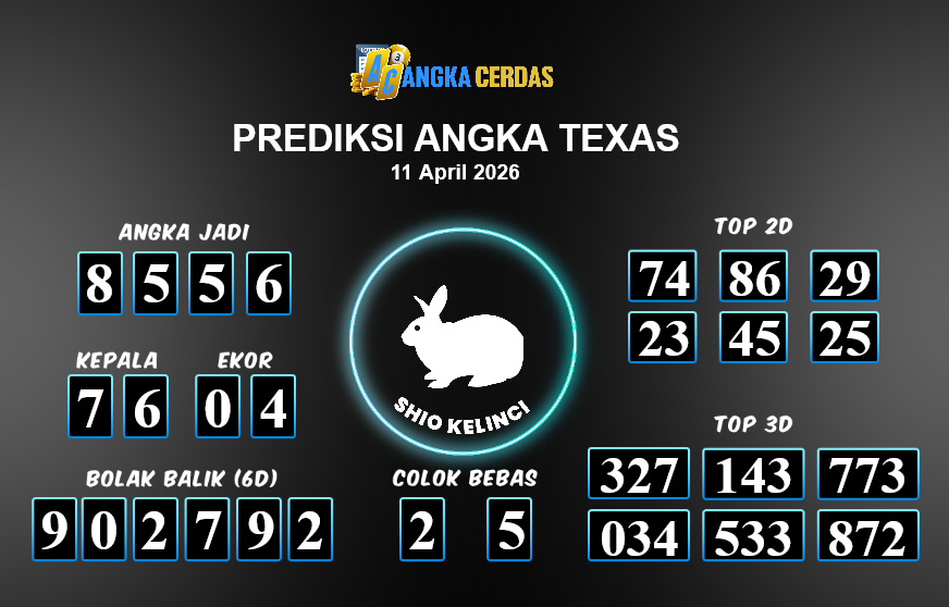 Prediksi Togel TEXAS untuk hari ini Sabtu, 11 April 2026, adalah salah