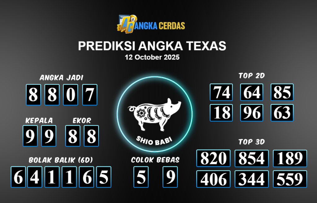 Prediksi Togel TEXAS untuk hari ini Minggu 12 Oktober 2025, adalah salah
