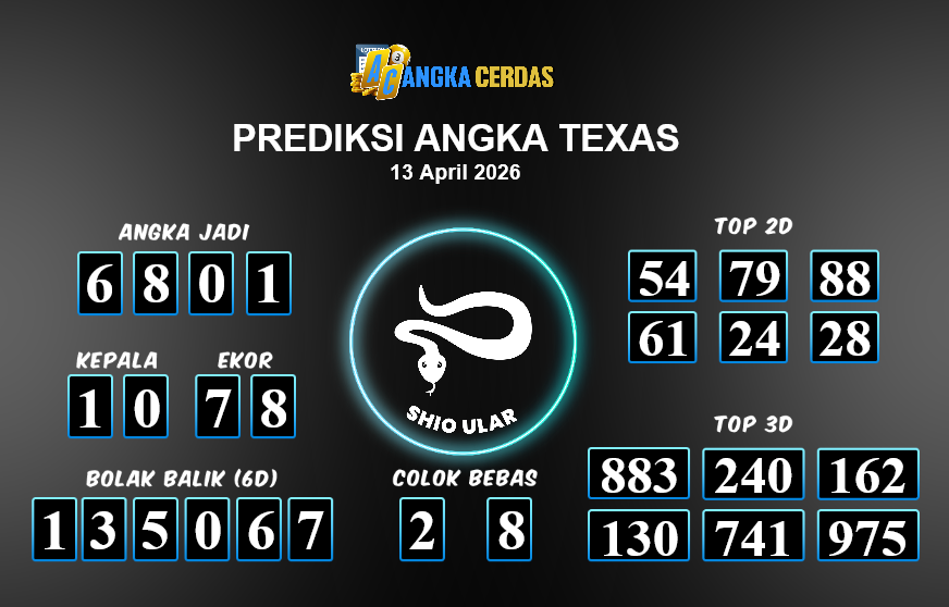 Prediksi Togel TEXAS untuk hari ini Senin, 13 April 2026, adalah salah