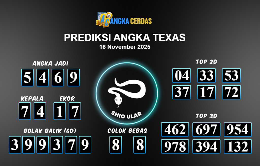 Prediksi Togel TEXAS untuk hari ini Minggu 16 November 2025, adalah salah