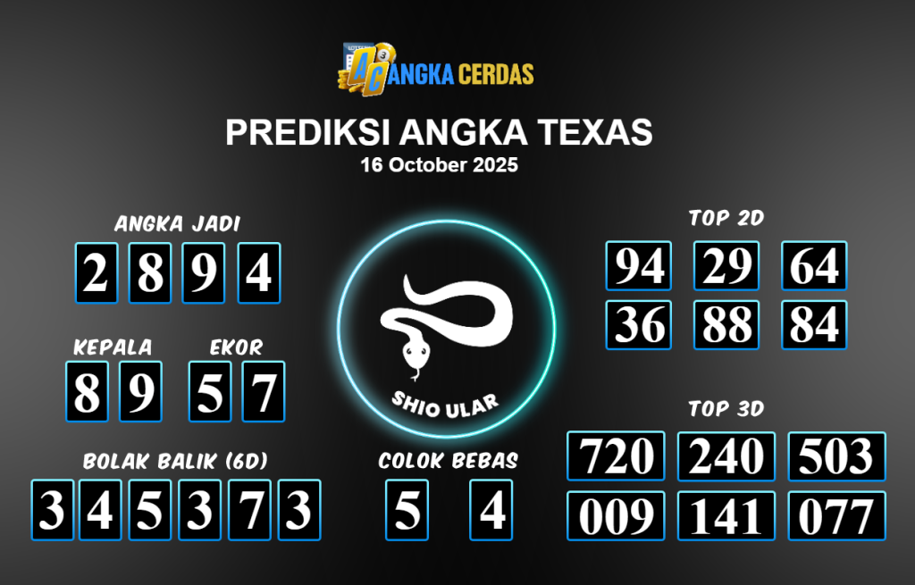 Prediksi Togel TEXAS untuk hari ini Kamis 16 Oktober 2025, adalah salah