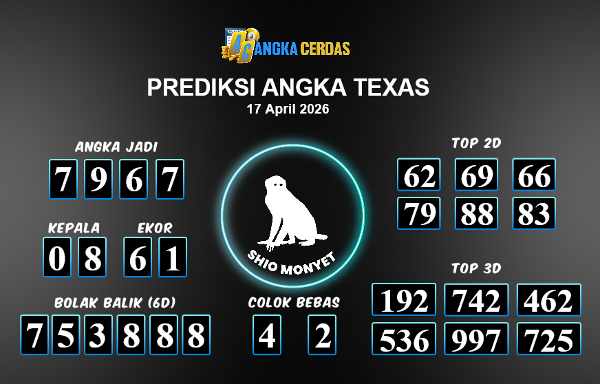 Prediksi Togel TEXAS untuk hari ini Jumat, 17 April 2026, adalah salah