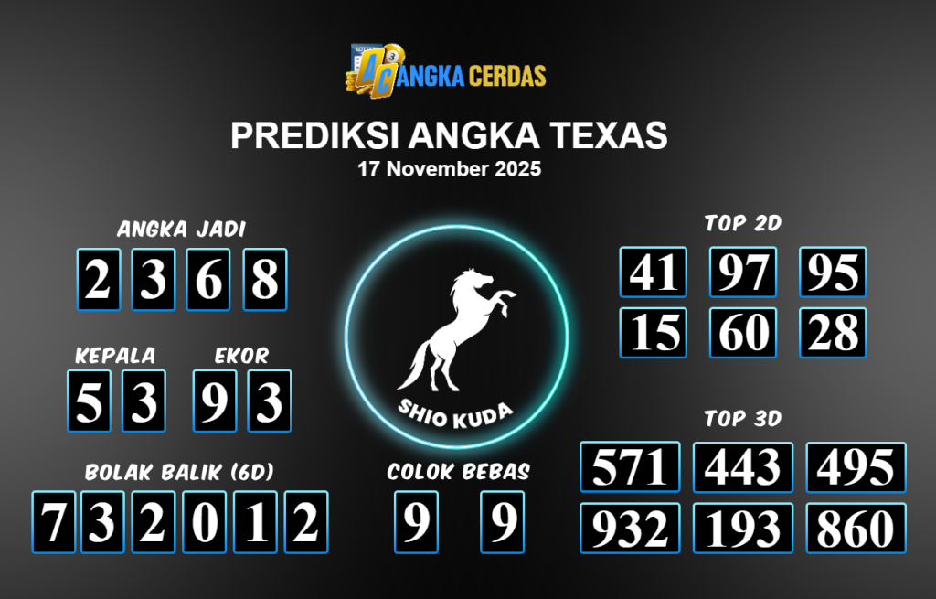 Prediksi Togel TEXAS untuk hari ini Senin 17 November 2025, adalah salah