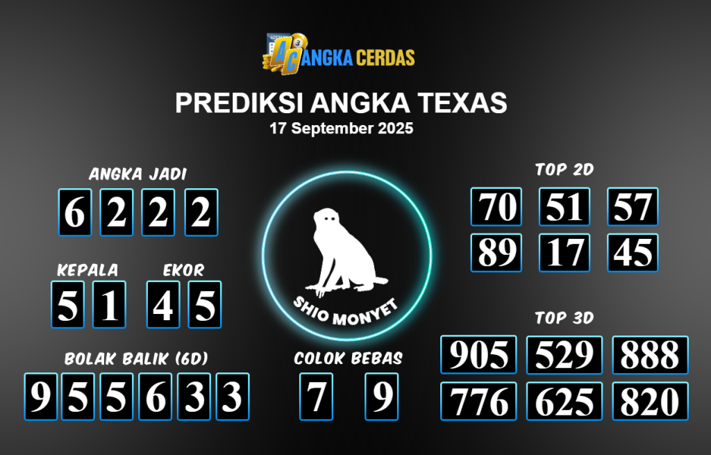 Prediksi Togel TEXAS untuk hari ini Rabu 17 September 2025, adalah salah
