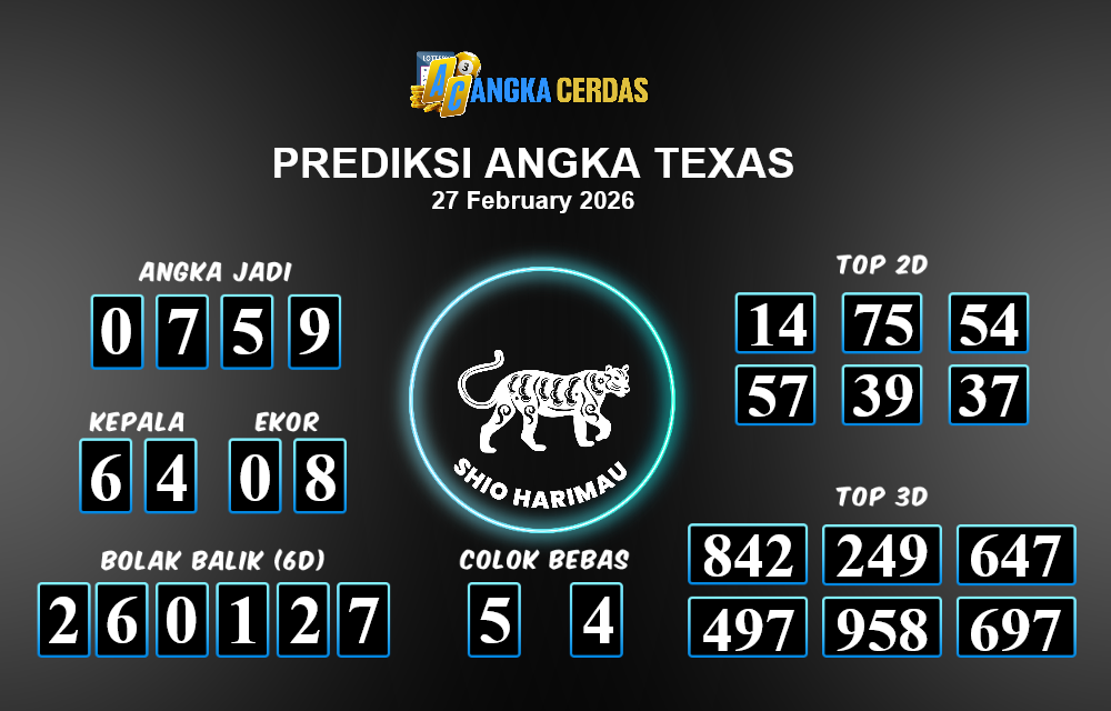 Angka Cerdas : Bocoran Prediksi Togel TEXAS Tanggal 27 FEBRUARI 2026