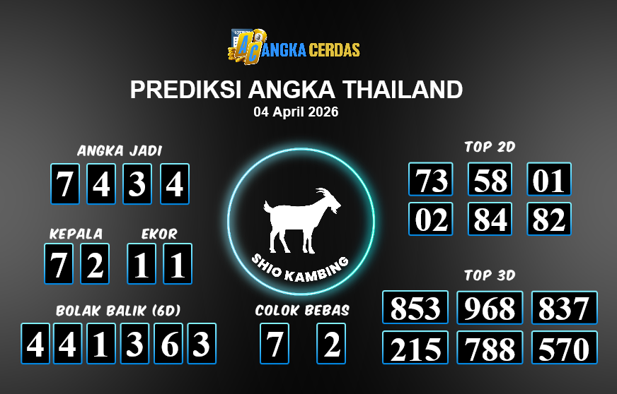 Prediksi Togel THAILAND untuk hari ini Sabtu, 04 April 2026, adalah salah
