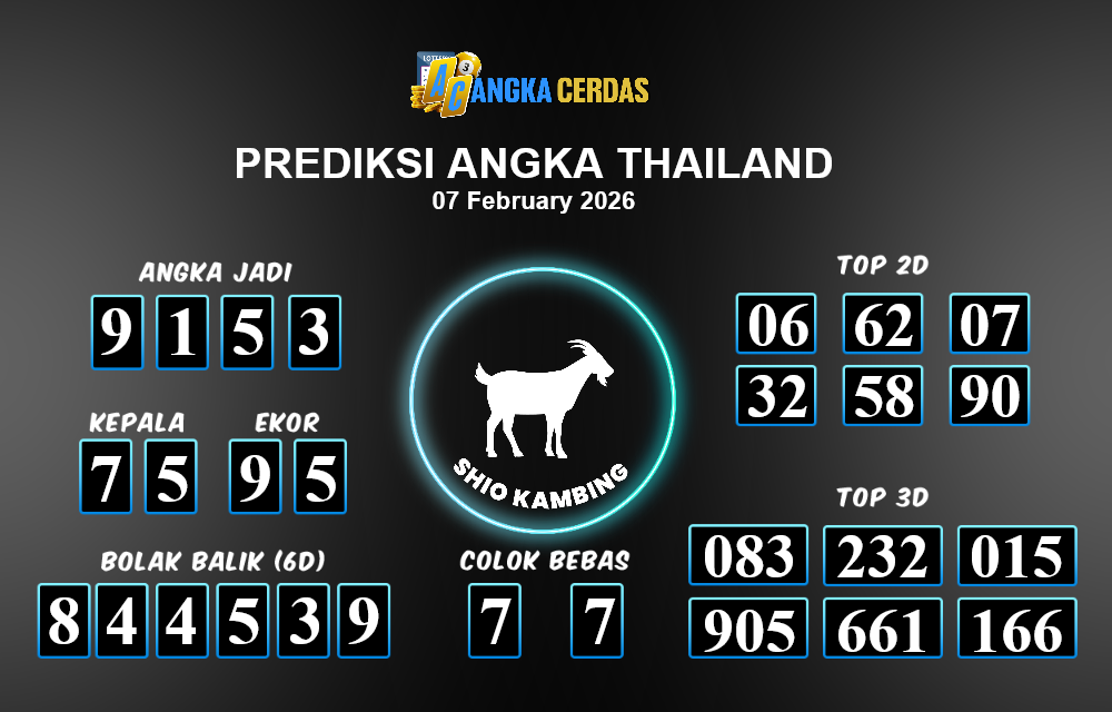 Prediksi Togel THAILAND untuk hari ini Sabtu, 07 Februari 2026, adalah salah