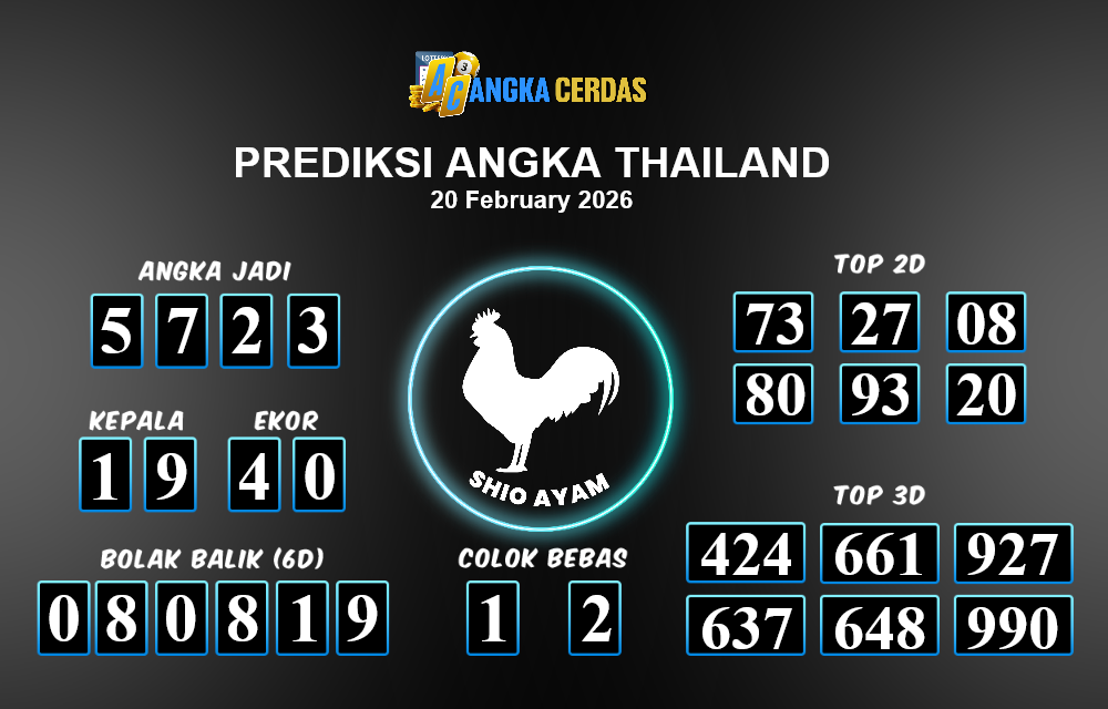 Prediksi Togel THAILAND untuk hari ini Jumat, 20 Februari 2026, adalah salah