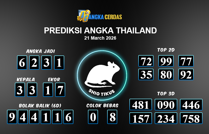 Prediksi Togel THAILAND untuk hari ini Sabtu, 21 Maret 2026, adalah salah