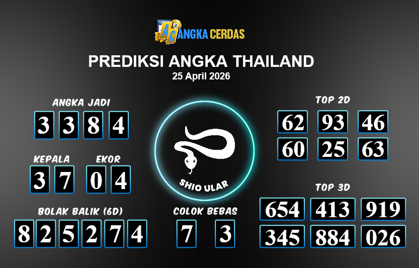 Prediksi Togel THAILAND untuk hari ini Sabtu, 25 April 2026, adalah salahsatu jenis togel yang memiliki banyak penggemar.Ini terutama ditujukanbagi Anda yang menyukai 4d/3d/2d. Prediksi Angka Cerdas yang kamisediakan,bisa