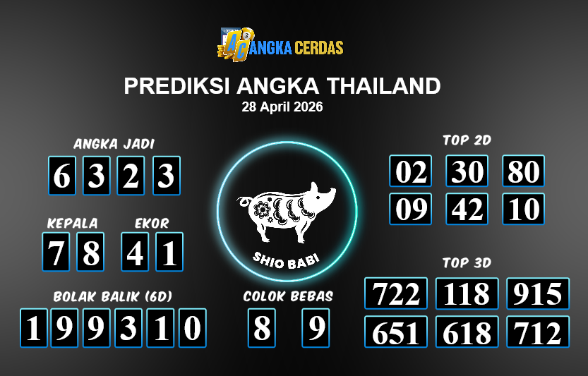Prediksi Togel THAILAND untuk hari ini Selasa, 28 April 2026, adalah salahsatu jenis togel yang memiliki banyak penggemar.Ini terutama ditujukanbagi Anda yang menyukai 4d/3d/2d. Prediksi Angka Cerdas yang kamisediakan,bisa