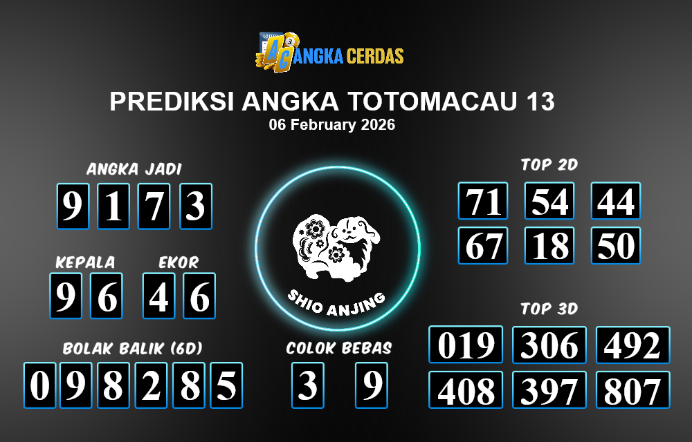 Angka Cerdas : Bocoran Prediksi Togel TOTOMACAU 13 Tanggal 06 FEBRUARI 2026