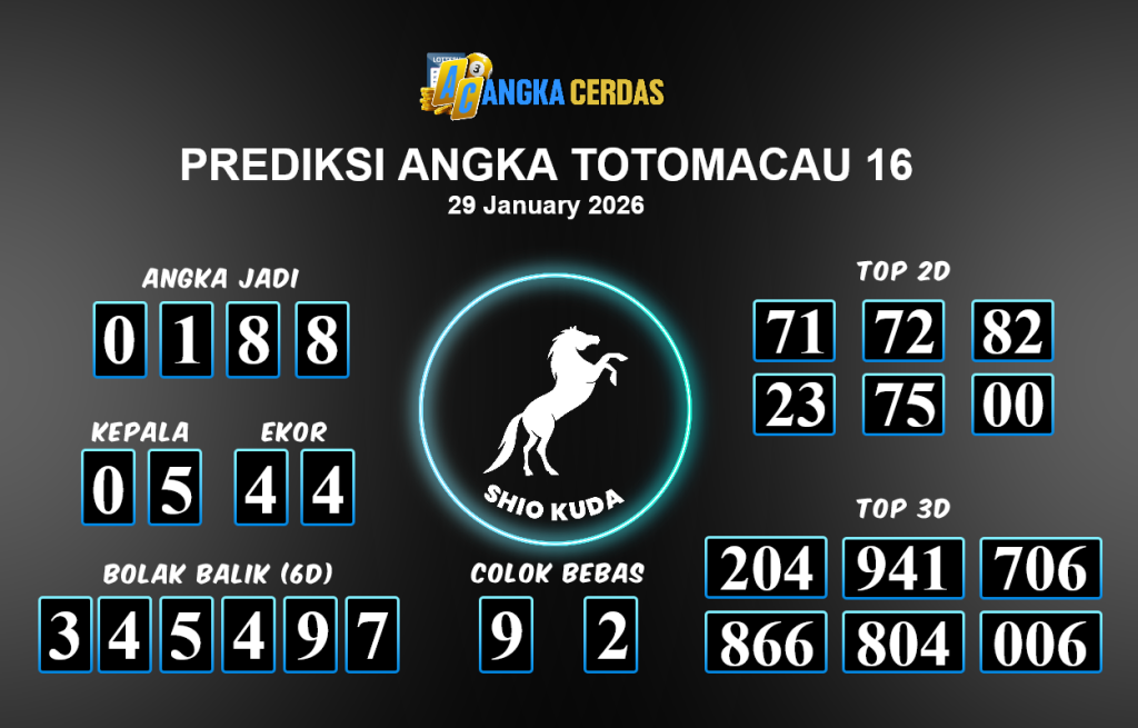 Angka Cerdas : Bocoran Prediksi Togel TOTOMACAU 16 Tanggal 29 JANUARI 2026