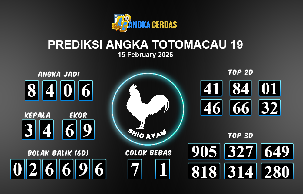 Prediksi Togel TOTOMACAU 19 untuk hari ini Minggu, 15 Februari 2026, adalah salah